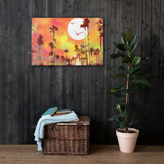 Sunset By The Ocean, Beach Life, Digital Art, Canvas Print, High Quality Image, For Home Decor & Interior Design
