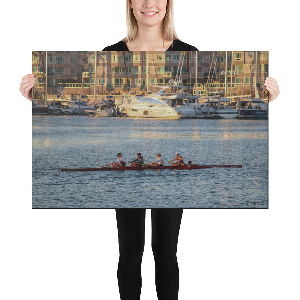 Rowing Crew at Sunset on the Marina, Photography, Canvas Print, High Quality Image, For Home Decor & Interior Design